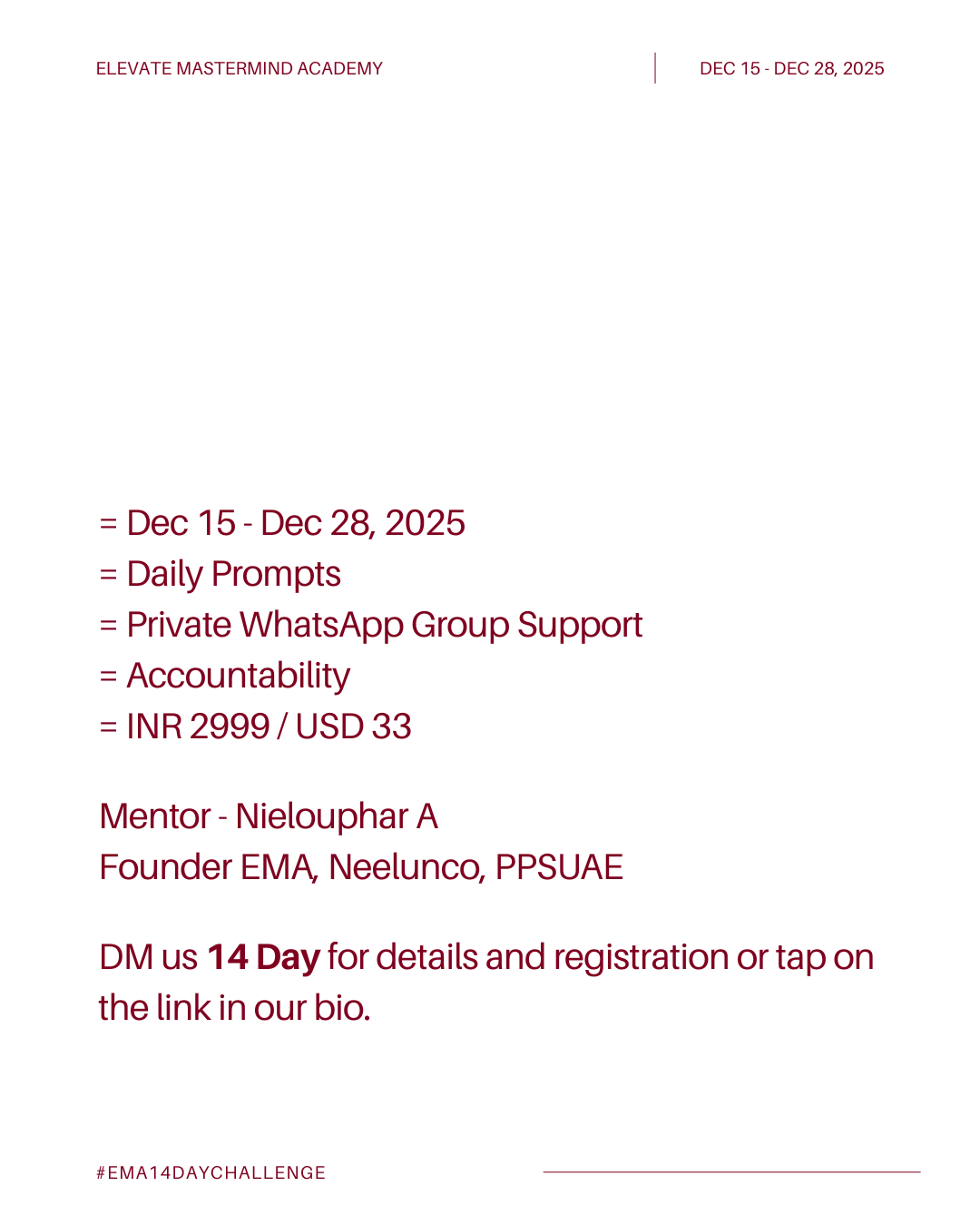 Hi, I’m Nielouphar. An Instagram Strategist + Coach. I’ve been helping women founders in GCC and India get visible and attract premium clients. After 10 years of coaching and working with thousands of women, I know this: Women don’t struggle with consistency. They struggle with conditioning. And this challenge is where we break that. Together. ♥️